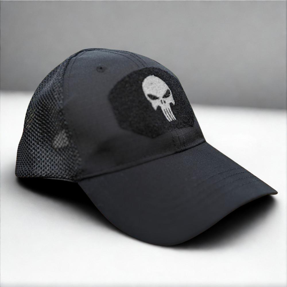 Șapcă tactică cu plasă pentru o mai bună respirabilitate în condiții tropicale. Include elemente tactice precum 3 panouri velcro și orificii de ventilație. Panoul velcro principal din partea frontală conține logo-ul Skull.