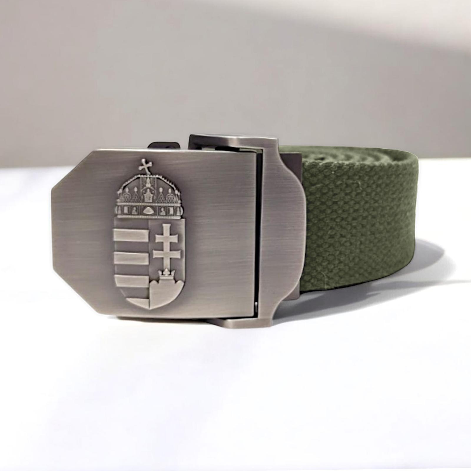 Curea cu cataramă metalică cu un motiv modern al emblemei Ungariei, care este reliefat pe catarama metalică, fiind astfel în format 3D. Sistemul de închidere este rapid și simplu.