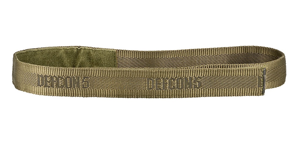 Curea tactică care se închide cu un panou velcro (adică prin intermediul unui fermoar cu scai). Curea nu conține și nici nu necesită cataramă.
