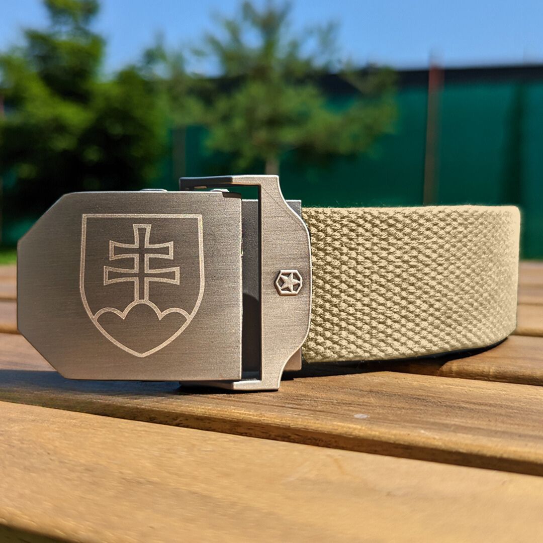 Opasok s kovovou prackou s motívom Slovenského znaku, ktorý je na kovovej pracke vygravírovaný. Systém zapínania je rýchly a jednoduchý.
