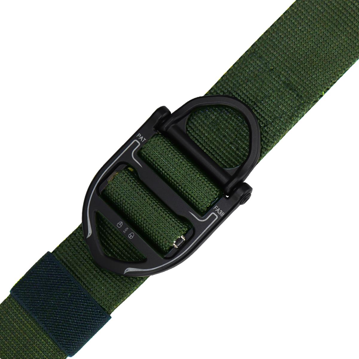 Mohutná prevliekacia kovová pracka typu FA38 predurčuje opasok na taktické využívanie a teda aj na upevňovanie ťažšej výstroje.