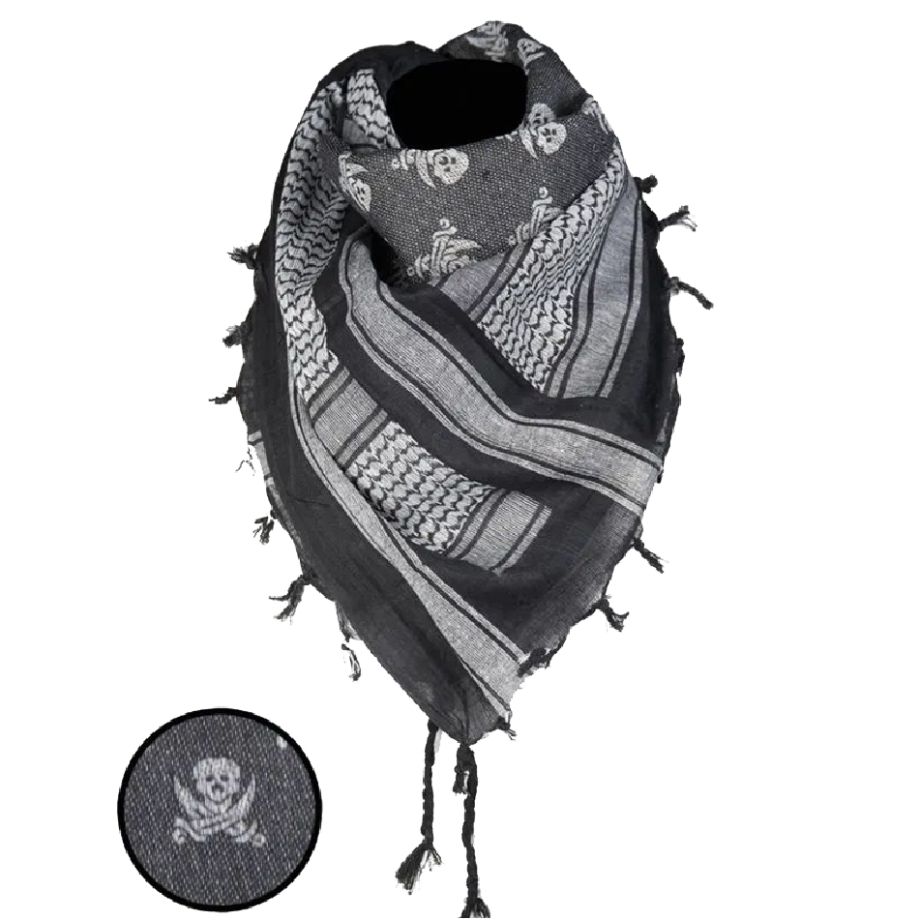 Eșarfă Arafat Shemag Skull alb-negru