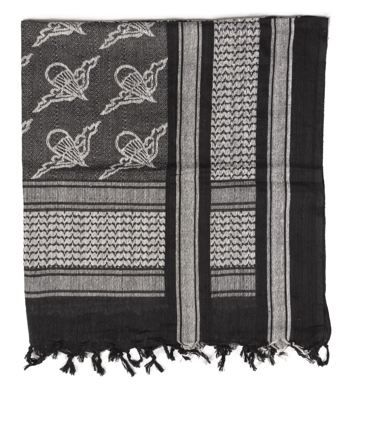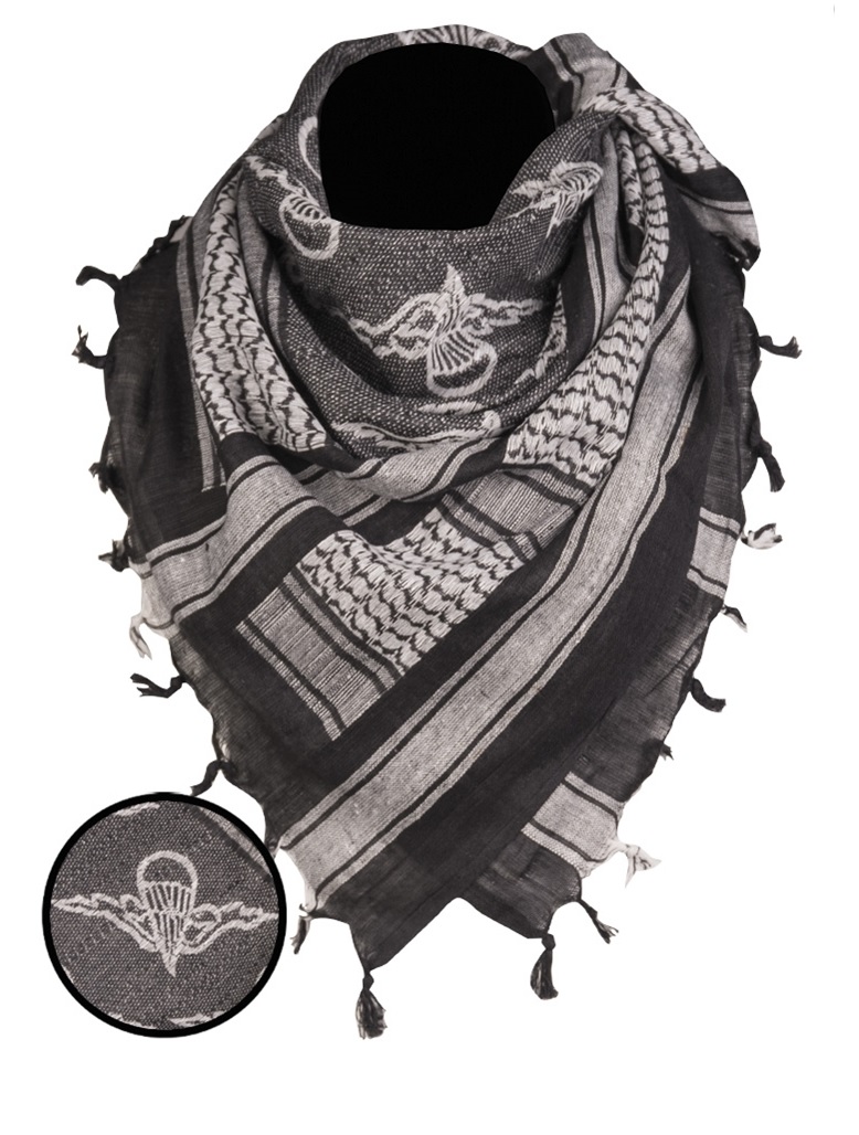 Eșarfă în stil Arafatka / Shemag. Dimensiunile sunt 110 x 110cm. Include și un mic logo Paratrooper (parașutiști).