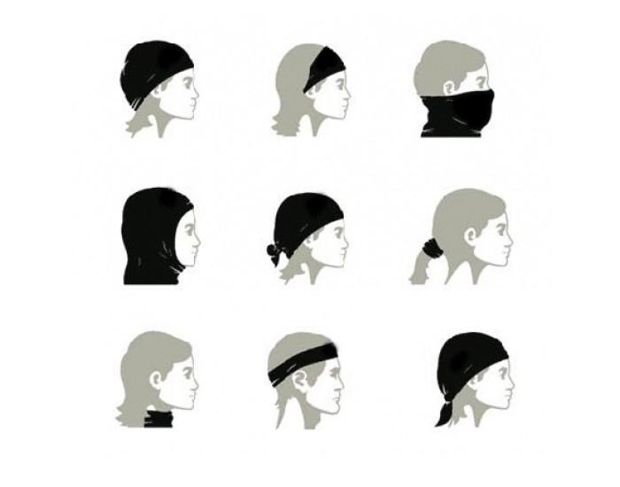 Poate fi ajustată și purtată în diferite moduri: căciulă, eșarfă, fular, cagulă, bentiță sau brățară sport. Ideală pentru drumeții.