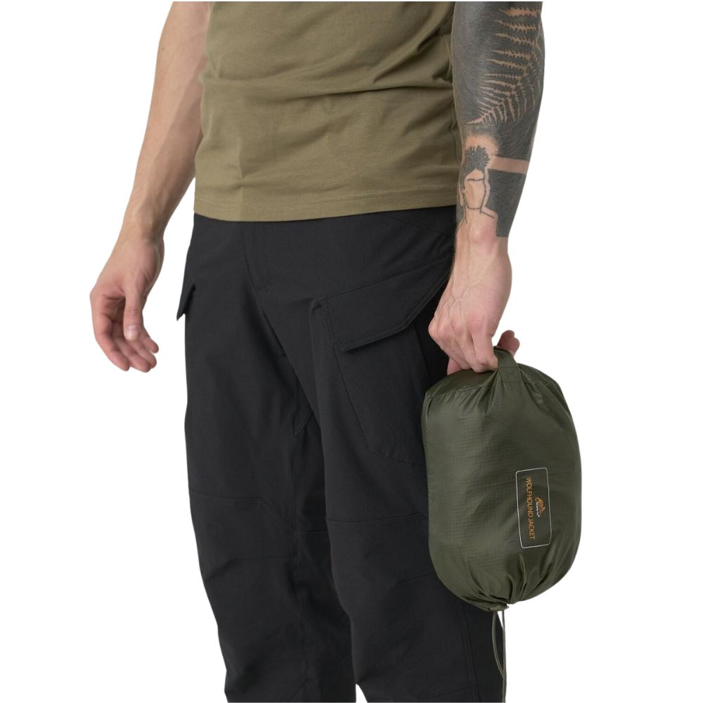 Geacă ultra-ușoară Wolfhound de la marca Helikon-Tex, cu izolație Climashield Apex, care oferă o izolație foarte ușoară. Este ideală pentru a fi purtată ca strat exterior într-o perioadă de tranziție, în condiții de vreme ușor rece, sau ca strat intermediar, de exemplu, sub geaci Gore-Tex, pentru o izolație suplimentară împotriva frigului.