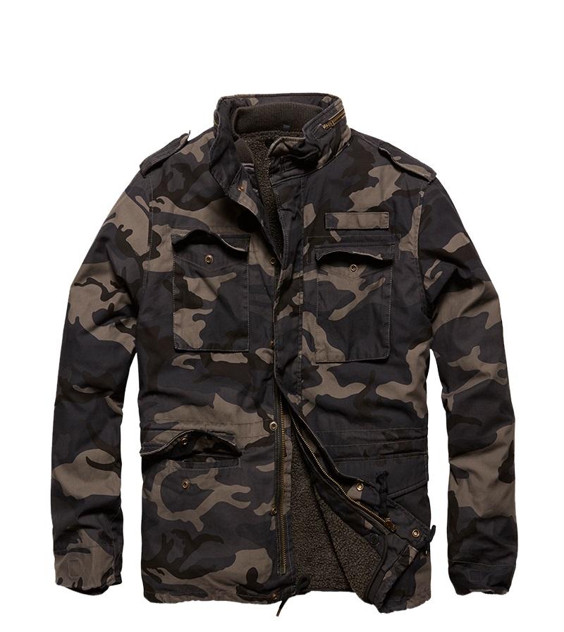 Geaca de iarnă Ground de la Vintage Industries, în nuanță dark camo, este un model de tip parka, cu un croi mai lung, ce ajunge sub nivelul taliei – aducând mai degrabă a un palton tactic. Închidere cu fermoar metalic robust, acoperit de o fentă cu capse.