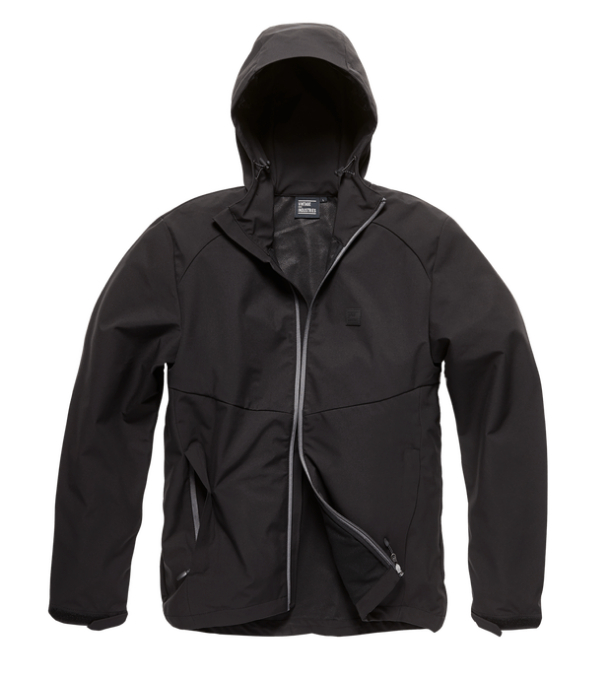 Softshellová bunda Vintage Industries Ather. Je to bunda - vetrovka určená na nosenie v prechodnom období. Bunda je strihovo do pása. Vrchný materiál je impregnovaný.