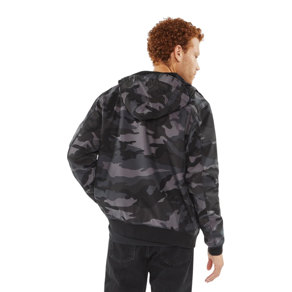 Geaca este realizată din material softshell rezistent la apă și vânt. Este ideală pentru sezonul de tranziție (primăvară/toamnă). Geaca este rezistentă la vânt (datorită membranei windproof) și, de asemenea, la ploaie ușoară. Un avantaj îl reprezintă și cozorocul prelungit de pe glugă. Interiorul este realizat din microfleece.