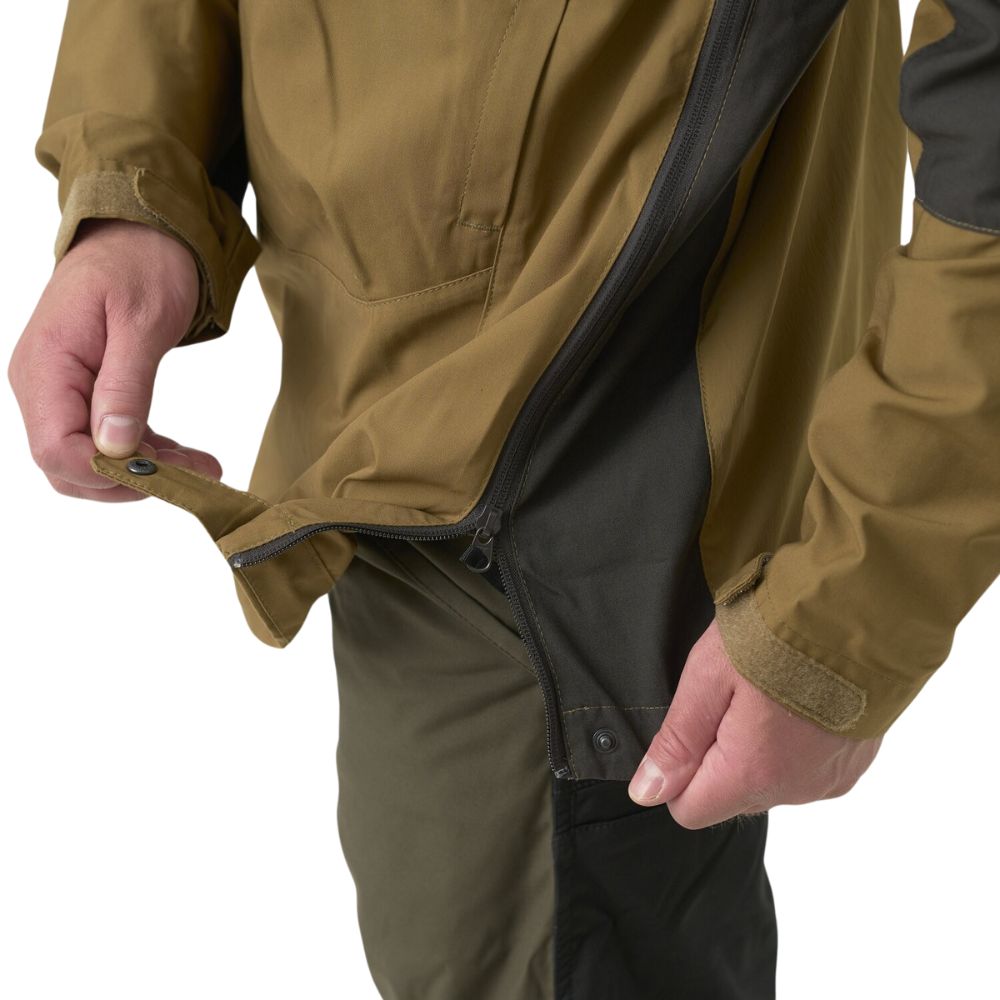 Fermoarul de ventilație se află pe toată lungimea laterală a gecii, nu doar la subraț. Acest lucru ajută și la îmbrăcare sau dezbrăcare. Geaca a fost proiectată de portalul survivaltech.pl și fabricată de compania Helikon-tex.