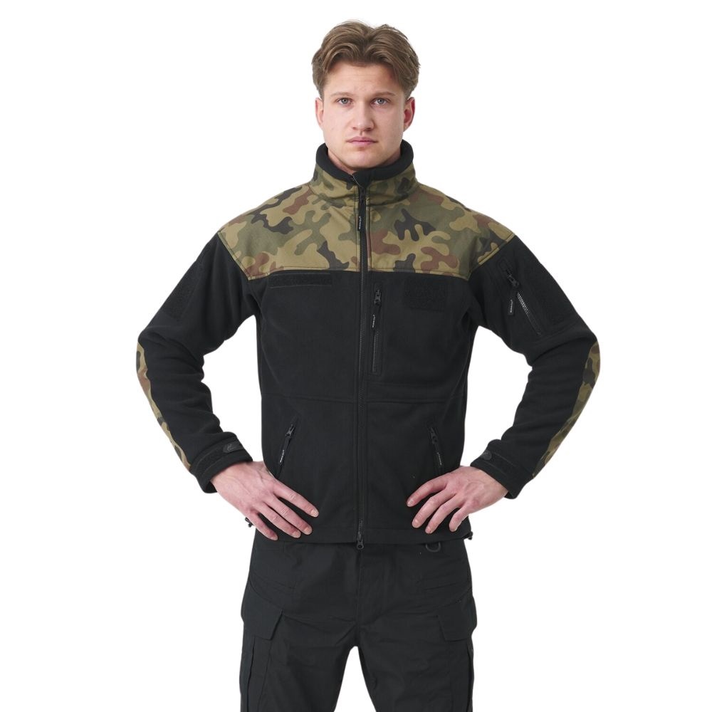 Jachetă călduroasă din material fleece dublu. Poate fi purtată ca strat exterior în perioadele de tranziție, dar și ca strat intermediar iarna. Jacheta este excelentă pentru condiții meteorologice dificile. Umerii, gulerul și coatele sunt întărite cu material rezistent, care are un model de camuflaj utilizat de armata poloneză, denumit PL woodland. Acest lucru contribuie și la un design plăcut.