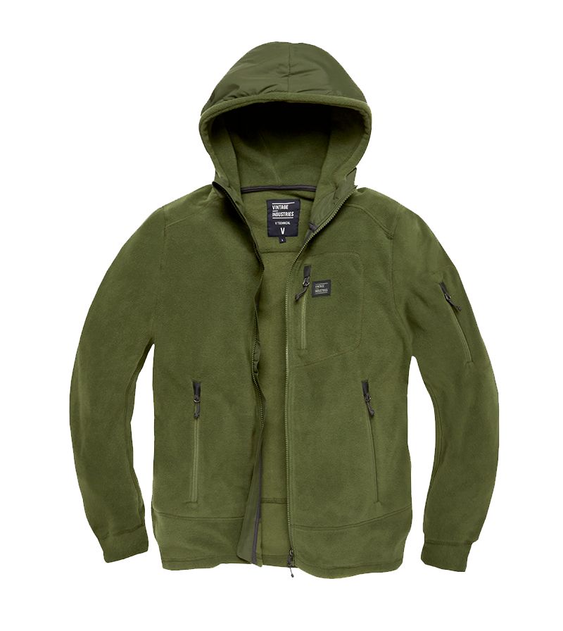 Prepracovaná flísová mikina od Holadského výrobcu Vintage Industries. Materiál je polar-fleece, ktorý je tvorený z dutých vlákien. Kvalitné zipsy od výrobcu YKK.