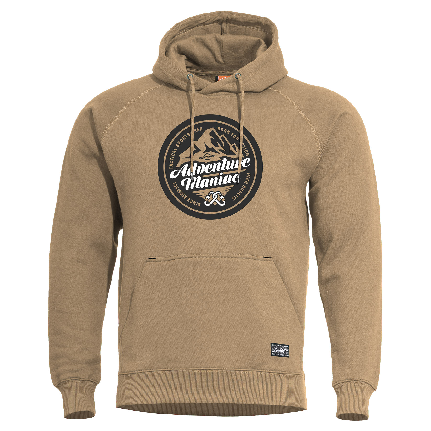 Acest model are pe piept un imprimeu Adventure Maniac. Croiala este confortabilă și, în același timp, arată foarte bine. Materialul, compus din 75% bumbac și 25% poliester, este plăcut. Interiorul este foarte moale. La capătul mânecilor și la baza hanoracului sunt manșete elastice.