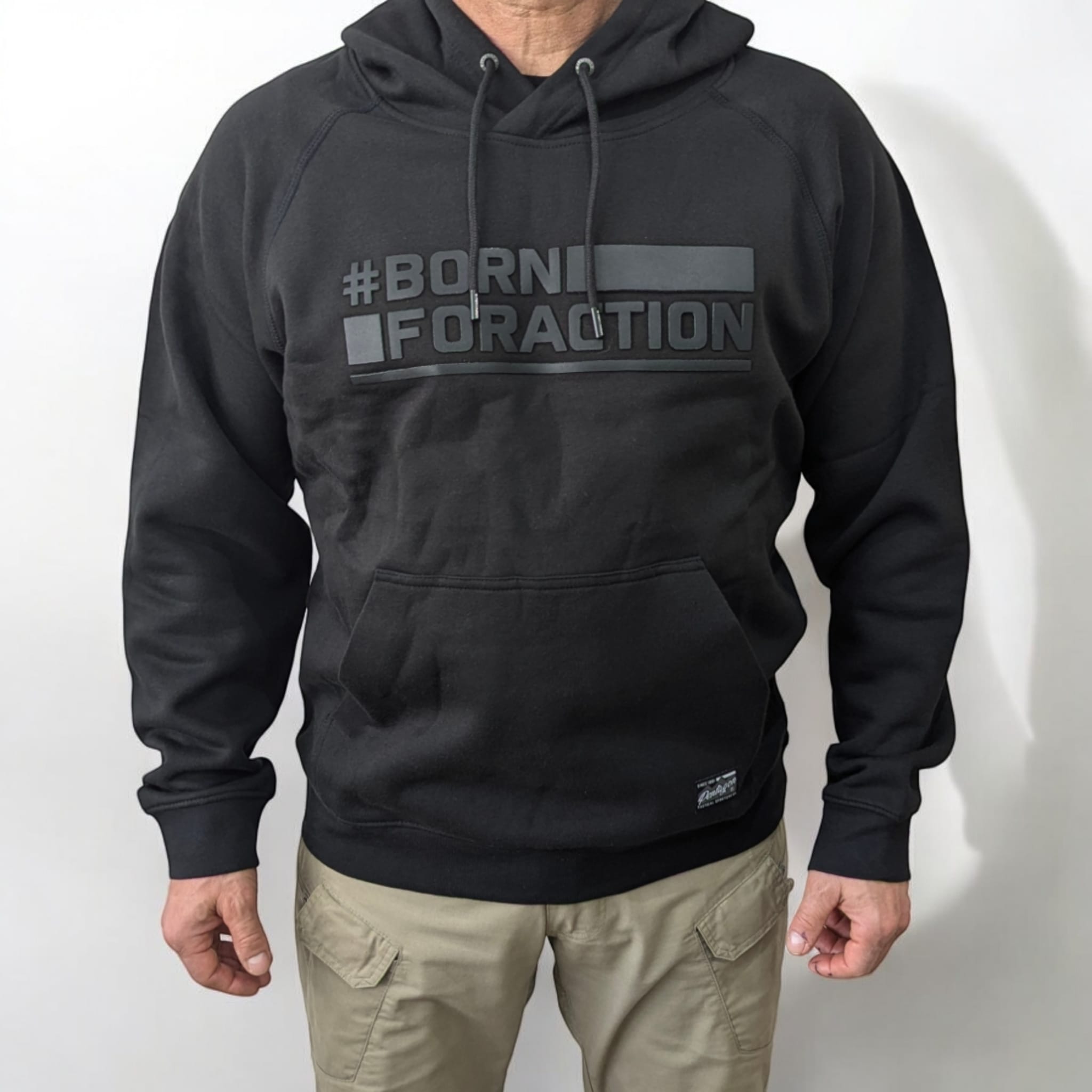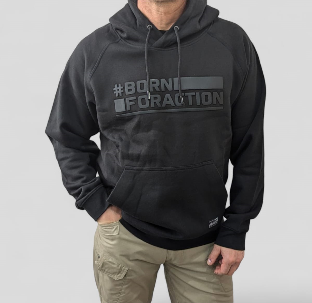 Acest model are pe piept inscripția Born For Action.