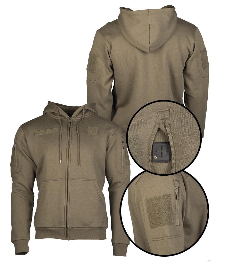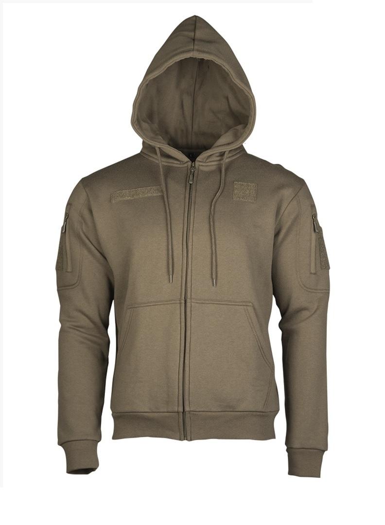 Športovo-taktická mikina s kapucňou. Má klasické vrecká vpredu a dve na zips uzatvárateľné menšie vrecká na rukávoch. Na rukávových vreckách sa nachádzajú menšie velcro-panely na upevnenie 3D patchov. Velcro panely nájdeme aj na hrudi.