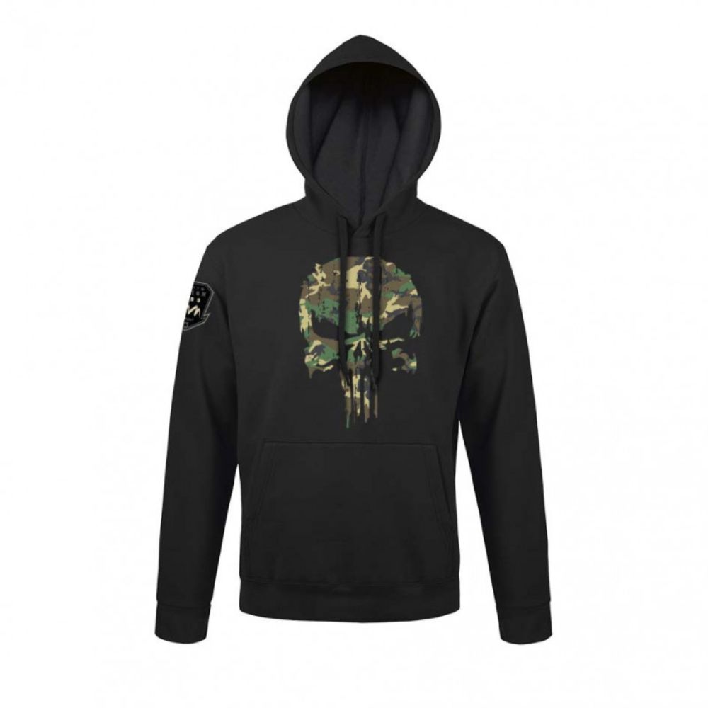 Na hrudi je potlač Skull v maskáčovom prevedení. Mikina nemá zipsy, na prednej časti je veľké klokanie vrecko.
