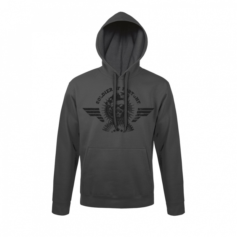 Na hrudi je potlač s army tématikou, Soldier of Fortune. Mikina nemá zipsy, na prednej časti je veľké klokanie vrecko.