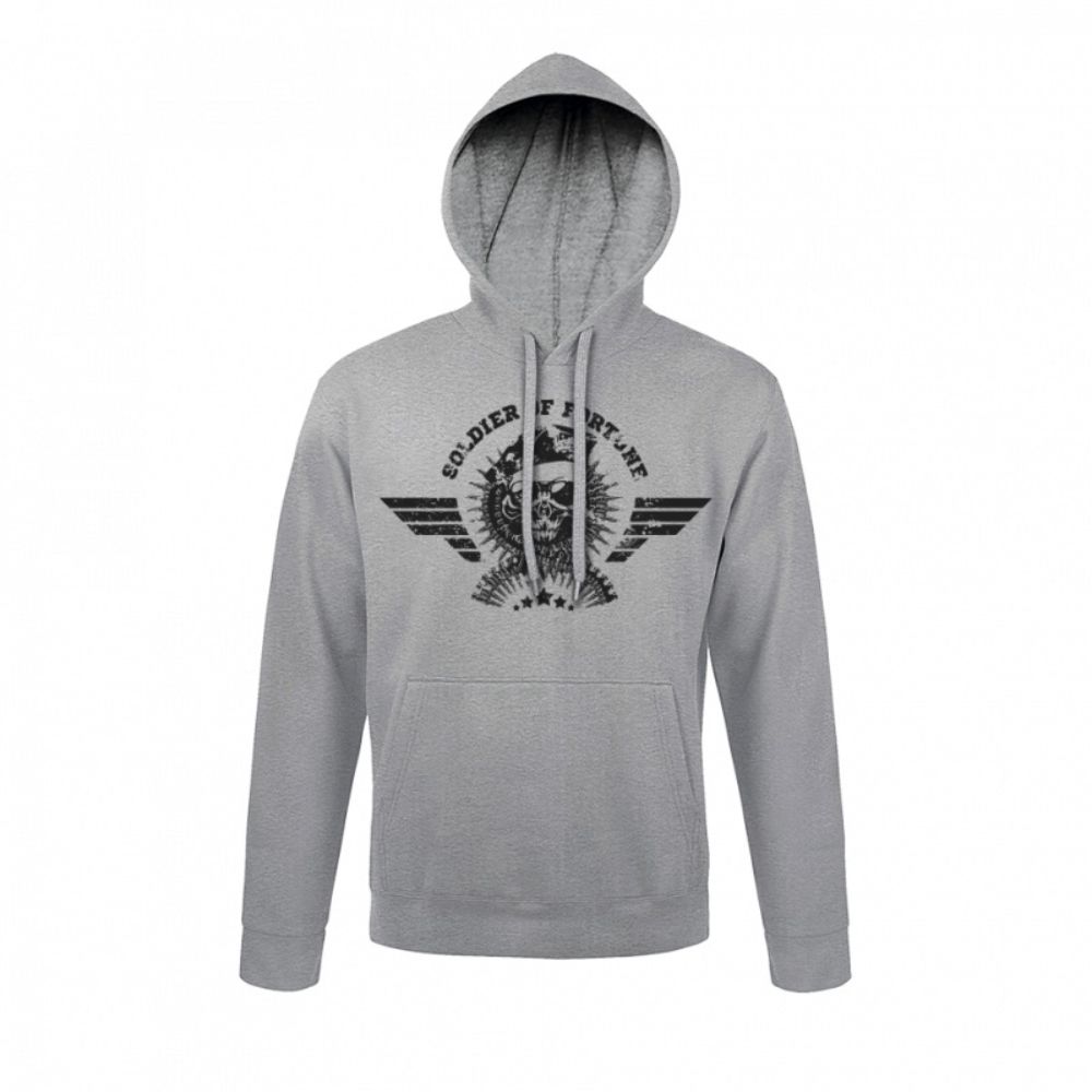 Na hrudi je potlač s army tématikou, Soldier of Fortune. Mikina nemá zipsy, na prednej časti je veľké klokanie vrecko.
