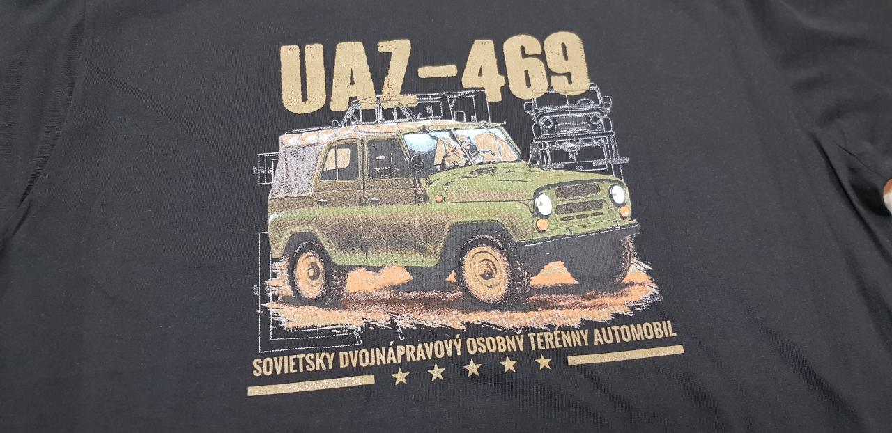 Tricou din bumbac pentru copii cu motivul cunoscutului vehicul militar UAZ-469.
