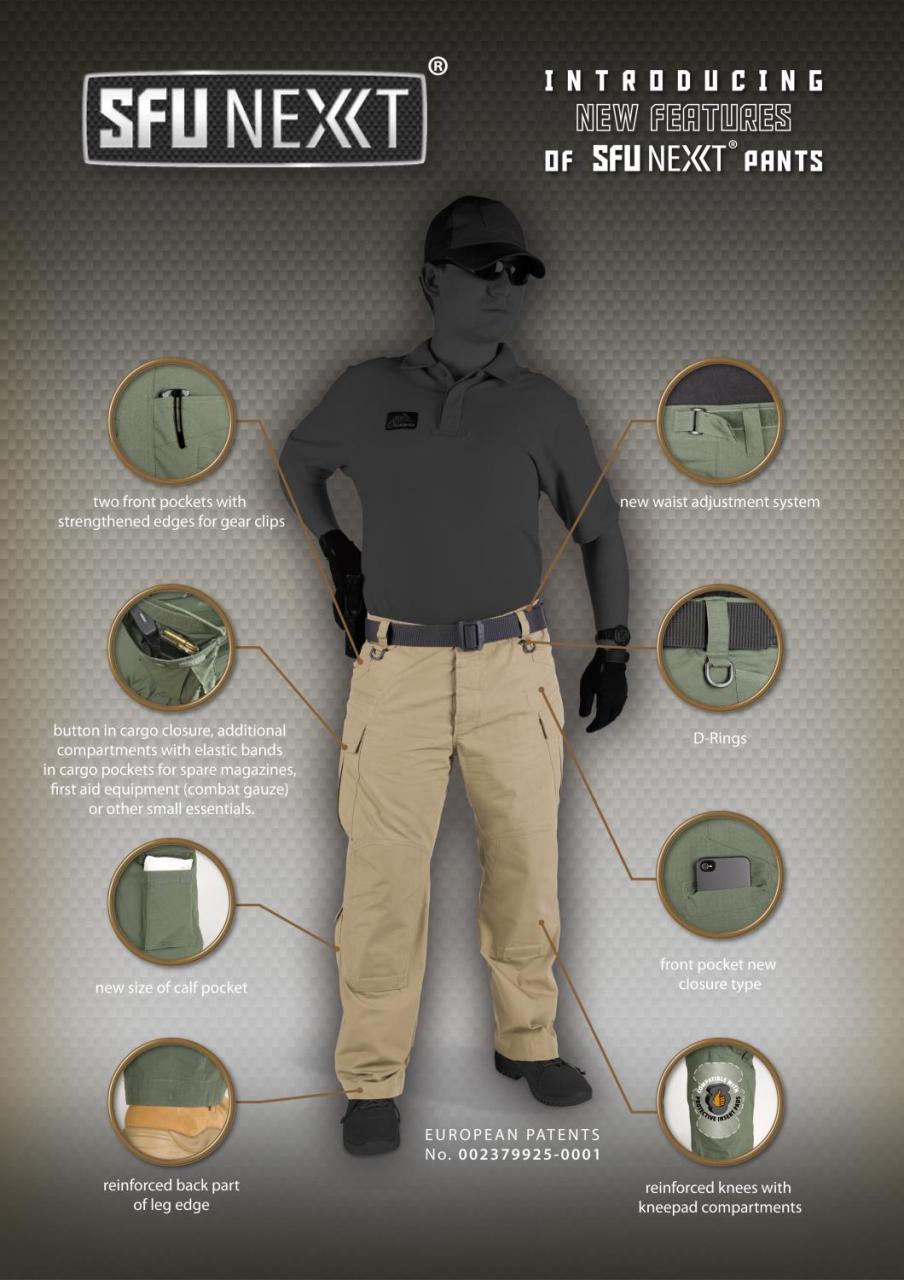 Veľmi populárne nohavice SFU-NEXT od výrbocu HELIKON-TEX. Nohavice majú voľnejší strih, odolný a priedušný materiál. Ako aj predchádzajúce nohavice SFU od firmy HELIKON-TEX, aj nový model SFU NEXT má množstvo vreciek pre uloženie nevyhnutného vybavenia.