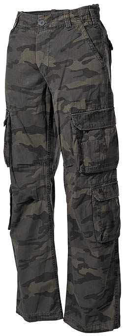 Vrecká: dve klasické vrecká vpredu, dve vrecká vzadu, dve priestranné vreká po stranách nad kolenami a dve pod kolenami