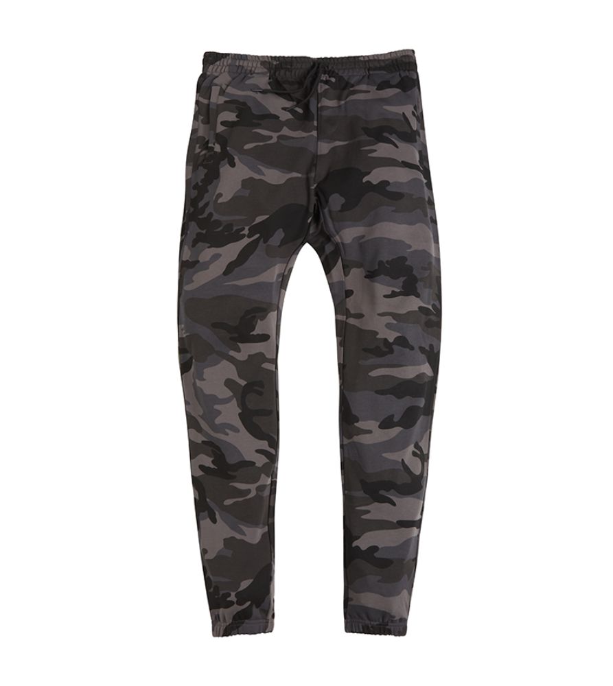 Pantaloni de trening camuflați din material de calitate de la brandul olandez Vintage Industries. Talia elastică cu șnur integrat permite reglarea confortabilă a taliei. La baza pantalonilor se află manșete elastice.