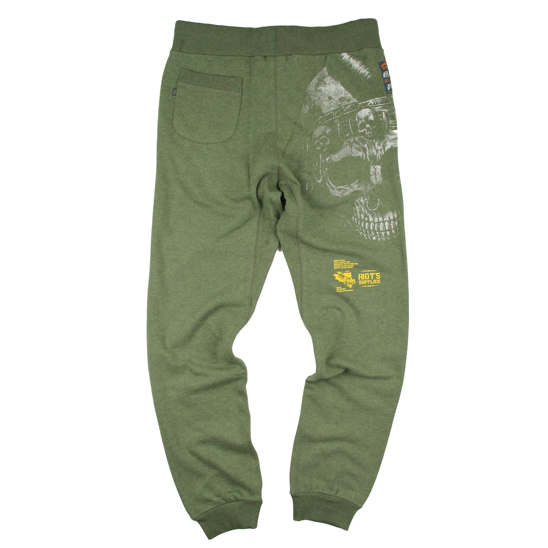 Patent na spodku teplákov, zosilnené zakončenia vreciek, šnúra v páse. Potlač je menšia v prednej časti a väčšia v zadnej časti.