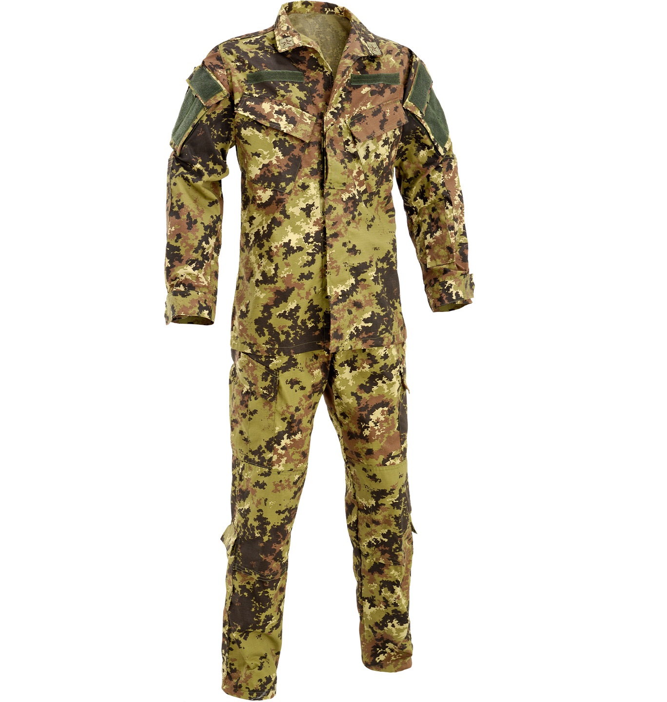 Set de uniformă în culorile Vegetato – modelul de camuflaj al Armatei Italiene. Produs de compania italiană Defcon5 și certificat pentru NATO. Este utilizabilă atât de profesioniștii din structurile armate italiene, cât și în alte contexte.