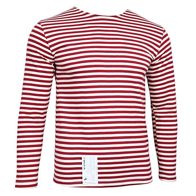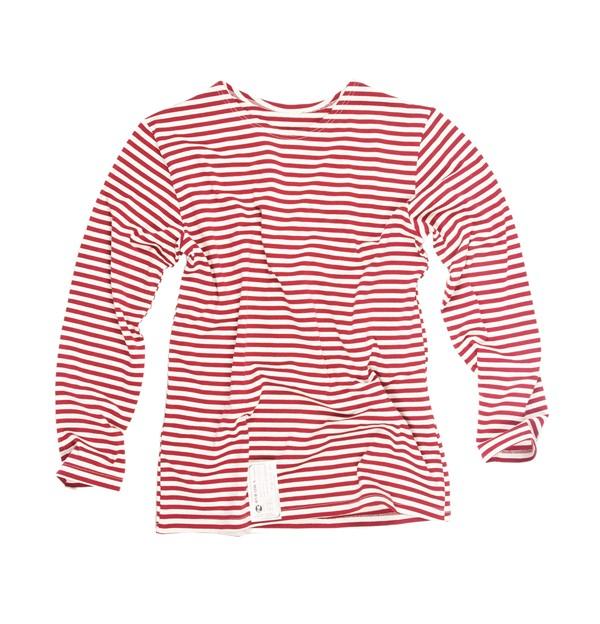 Bluză cu dungi și mâneci lungi. Această bluză marinărească are dungi de culoare roșie. Materialul este 100% bumbac, însă structura sa este realizată printr-un sistem de tricotare dublă, ceea ce crește durabilitatea acestui material.
