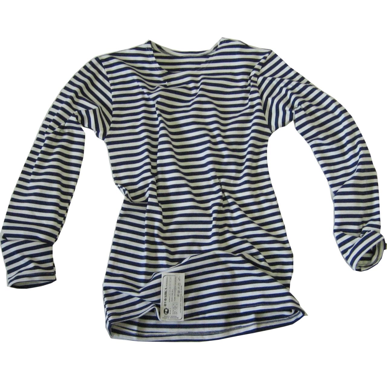 Bluza cu mânecă lungă, cu dungi în nuanță albastru închis. Confecționată 100% din bumbac, structura materialului este realizată printr-o țesătură dublă, ceea ce îi crește durabilitatea.