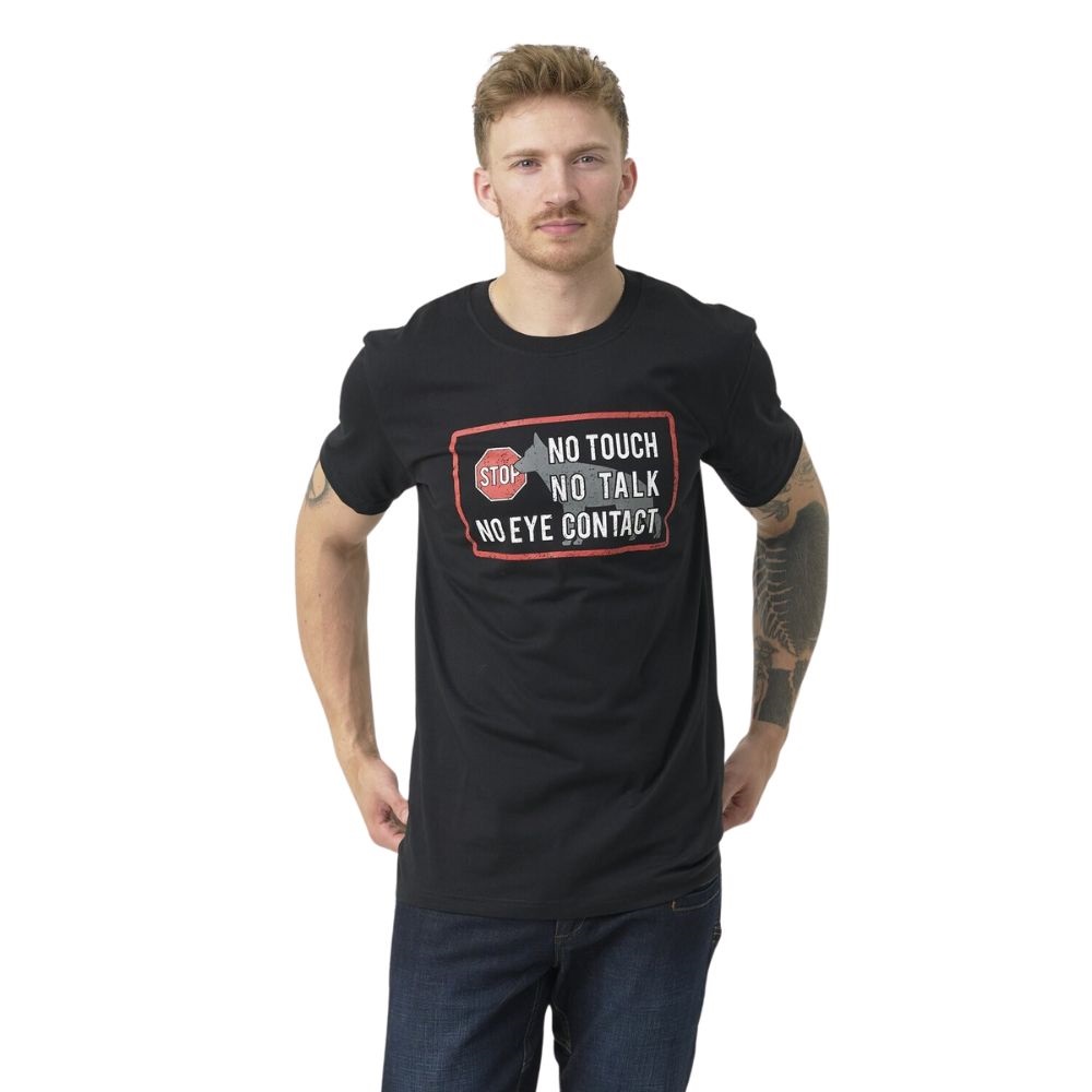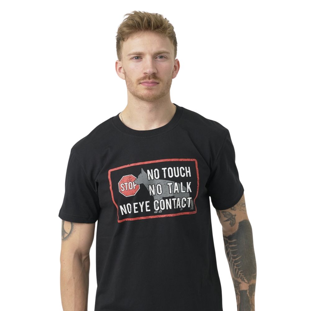 Tricou de bumbac de calitate, cu croială clasică militară, de la firma HELIKON-TEX. Motivul K9 cu inscripția No Touch, No Talk, No Eye Contact = Nu atinge, Nu vorbi, Evită contactul vizual.