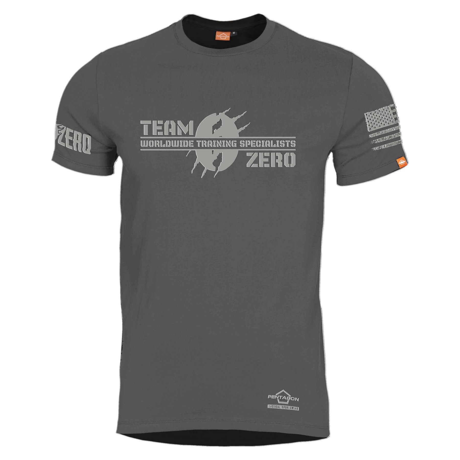 Designul tricoului include logo-ul Team Zero (echipa internațională de specialiști în antrenamente tactice).