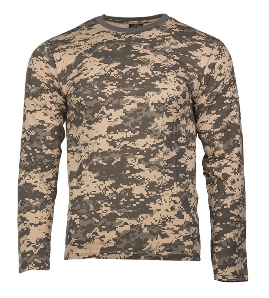 Bluză de calitate cu mânecă lungă și model camuflaj digital.