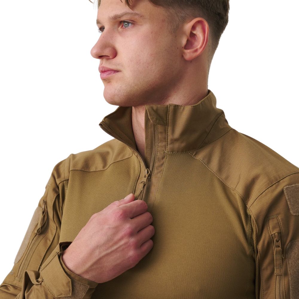 Conceput pentru purtarea sub veste tactică: partea centrală este realizată din material cu uscare rapidă și respirabil, în timp ce mânecile și gulerul sunt confecționate din material rezistent Rip/Stop.