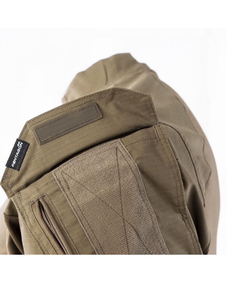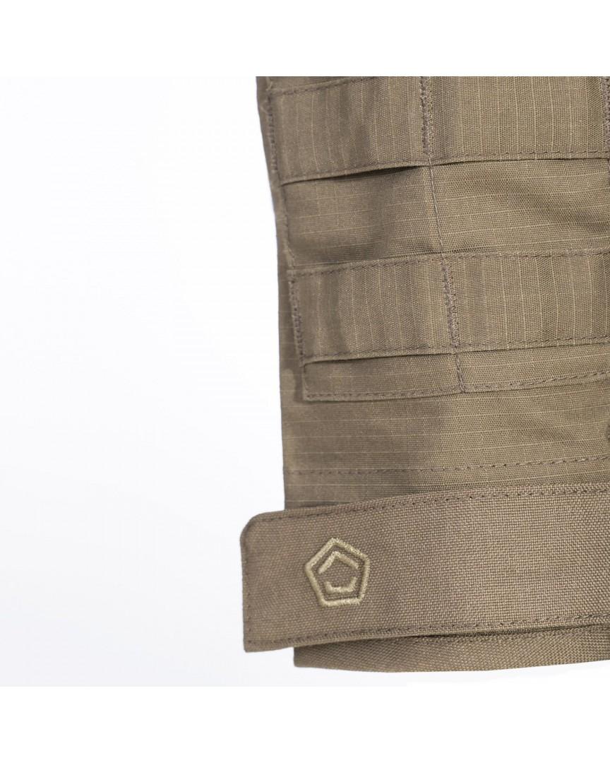 Elasticitatea gulerului, combinată cu extensibilitatea mecanică a țesăturii, permite îmbrăcarea ușoară și adaptarea tricoului la diverse tipuri de conformații. Modelul Wolf Combat dispune de multiple spații de depozitare pentru accesorii și este echipat chiar și cu sistem MOLLE/PALS pe antebrațe, oferind compatibilitate ridicată pentru prinderea diverselor accesorii.