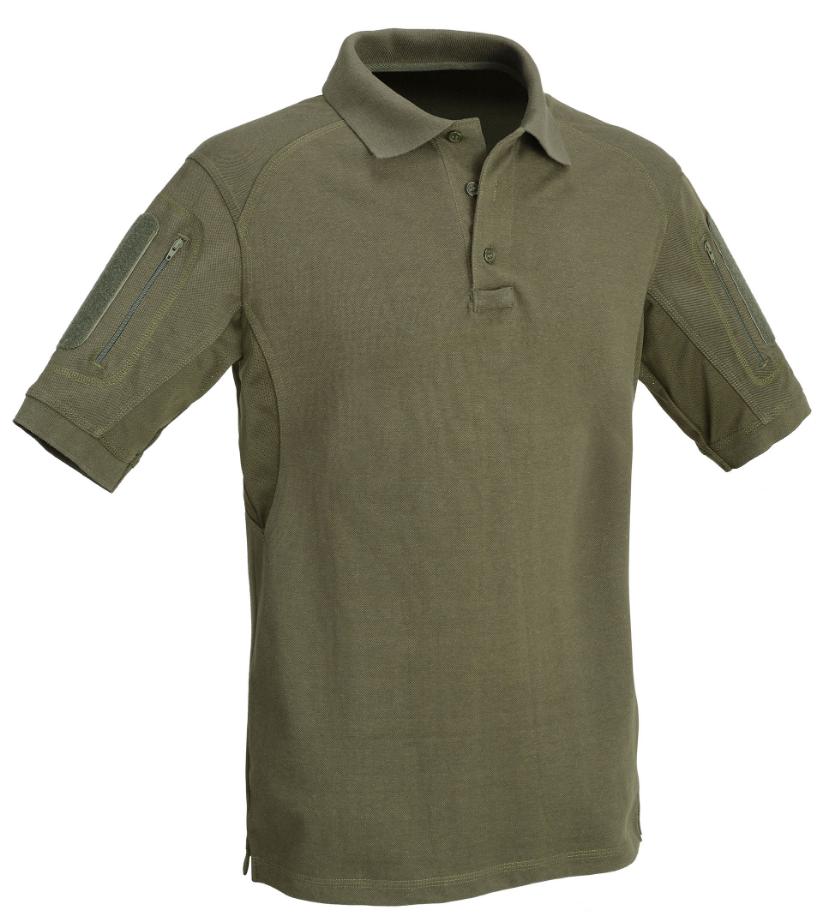 Tricou tactic Polo cu mânecă scurtă. Pe mâneci conține panou velcro și buzunar. Gulerul se închide cu 3 nasturi.