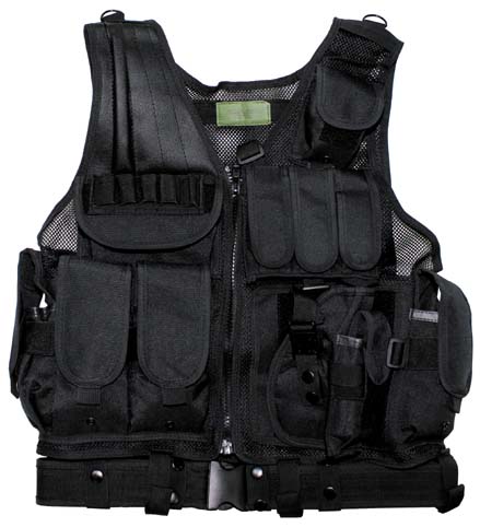 Profesionálna taktická vesta s priedušným chrbátom, vystuženou vrchnou časťou, nylonovým opaskom a rôznymi kapsami.