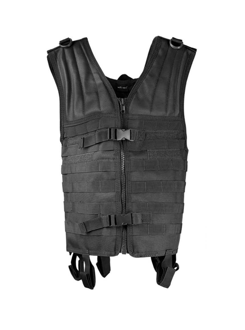 Vestă tactică ușoară și simplă, cu sistem modular MOLLE, fermoar central și 2 clame suplimentare care asigură închiderea. Lățimea este reglabilă pe laterale. Este ideală pentru cei care doresc să-și organizeze încărcătoarele, buzunarele și accesoriile exact după preferințe. Vesta este concepută și pentru a fi purtată împreună cu o curea tactică, care poate fi fixată prin clapetele din partea inferioară.