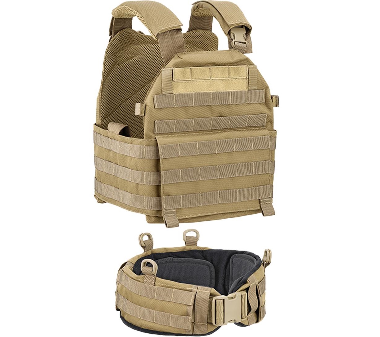 Partea din față și din spate a suportului de plăci este acoperită cu sistemul MOLLE, iar pe partea din spate se află mânerul de evacuare. Posibilitate de ajustare cu ajutorul benzii velcro. În interior pot fi plasate plăci balistice. Echipată cu centură MOLLE.