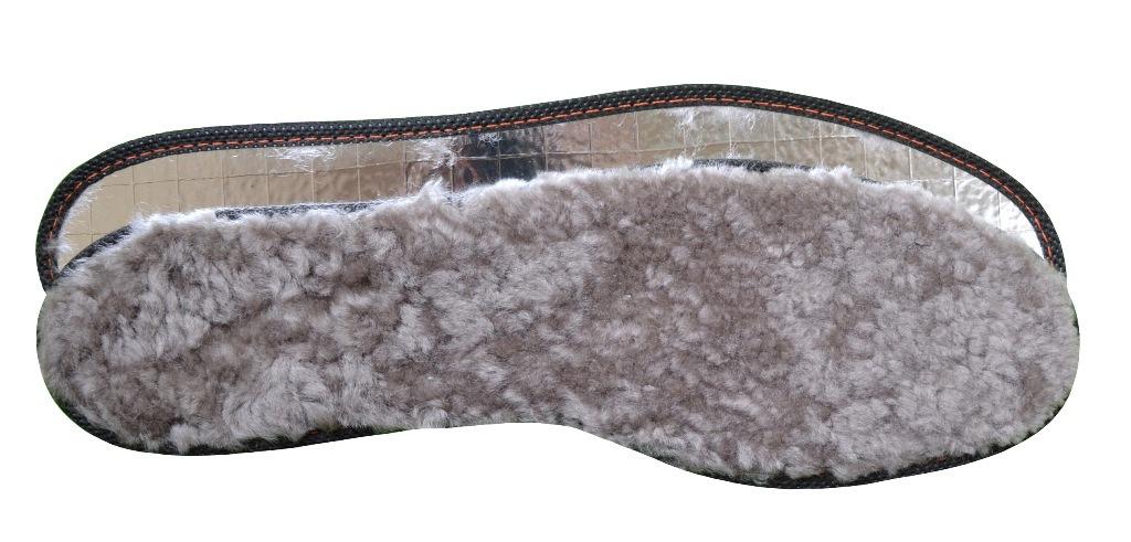 Zimná vložka do obuvi, ktorá vynikajúco izoluje teplo a hreje. Kombinácia pravej ovčej vlny s hliníkovou fóliou (izolačná vrstva). Farba kožušiny a odtiene sa môžu pri jednotlivých kusoch líšiť (tmavé aj bledé).