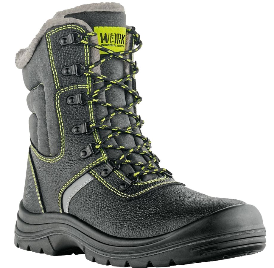 Încălțăminte complet din piele, cu tratament hidrofug și căptușeală din fleece. Ideală pentru muncă în sezonul rece.