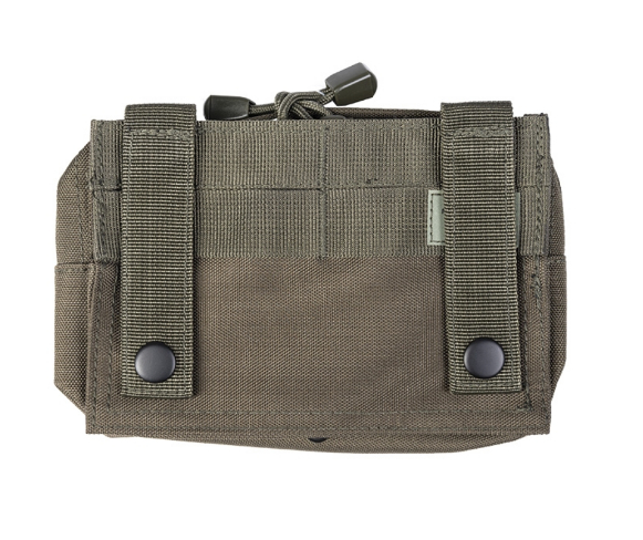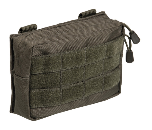 Borsetă mică orizontală echipată cu sistem MOLLE. Închiderea se face cu fermoar dublu sens. Pe partea frontală se află un panou velcro pentru patch-uri.