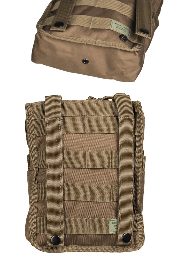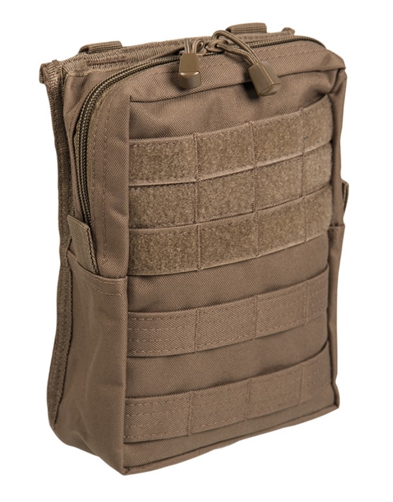 Husă verticală echipată cu sistem MOLLE. Închidere cu fermoar dublu sens. Include și panou velcro pentru patch-uri.