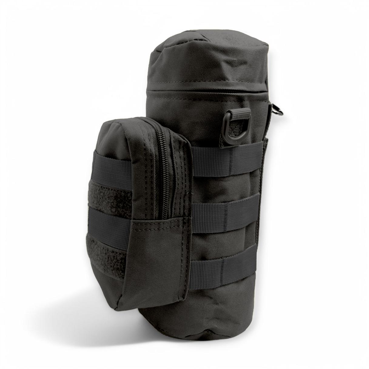 Geantă practică de la producătorul Rinokor. Bottlebag, datorită formei sale cilindrice, este potrivită în special pentru recipiente precum termosuri mai mici sau sticle. Pe partea din față se află un compartiment mai mic care conține curele elastice organizatoare. Geanta este echipată cu sistemul Molle pe părțile laterale și pe partea din față. Pe partea superioară a buzunarului sunt amplasate orificile D.