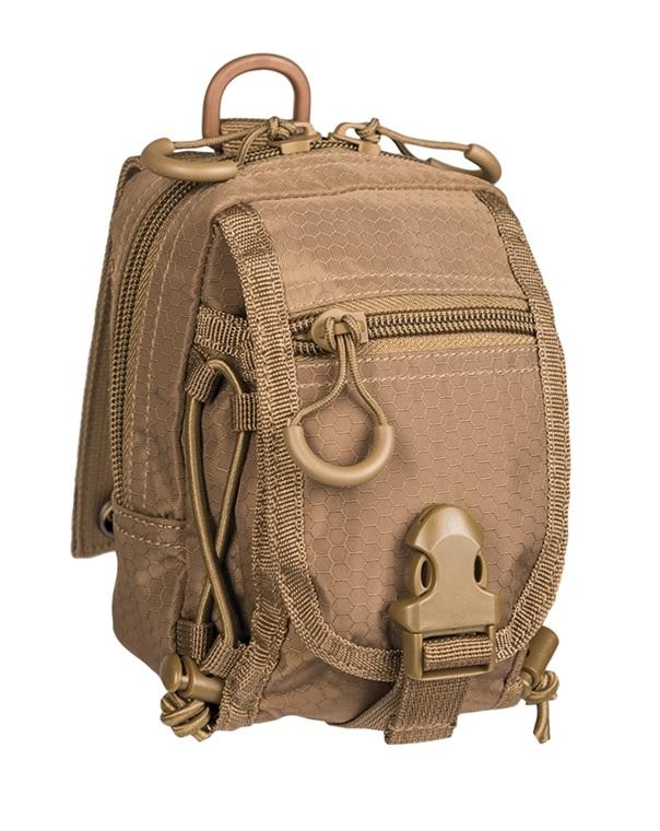 Viacúčelová kapsa na opasok s Molle systémom. Kapsička je z odolného materiálu, ktorý je na povrchu spracovaný do menších 6-uholníkov, čo pridáva na odolnosti. Kapsička je polstrovaná kvôli pohodlnejšiemu noseniu (aby Vás napríklad netlačili do bokov kľúče, ktoré máte v kapsičke a pod.).