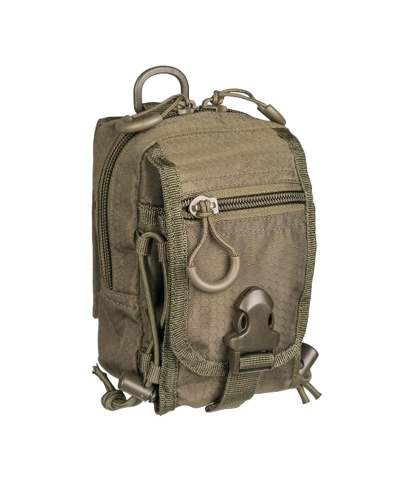 Viacúčelová kapsa na opasok s Molle systémom. Kapsička je z odolného materiálu, ktorý je na povrchu spracovaný do menších 6-uholníkov, čo pridáva na odolnosti. Kapsička je polstrovaná kvôli pohodlnejšiemu noseniu (aby Vás napríklad netlačili do bokov kľúče, ktoré máte v kapsičke a pod.).