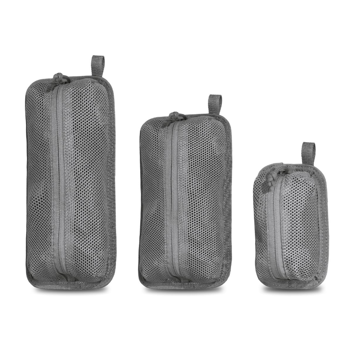 Setul Trinity Mesh Pentagon conține trei dimensiuni care pot fi depozitate una în cealaltă, economisind spațiu. Fiecare acest organizator este realizat din plasă de înaltă calitate, se închide cu fermoar YKK și are buclă pentru agățare.