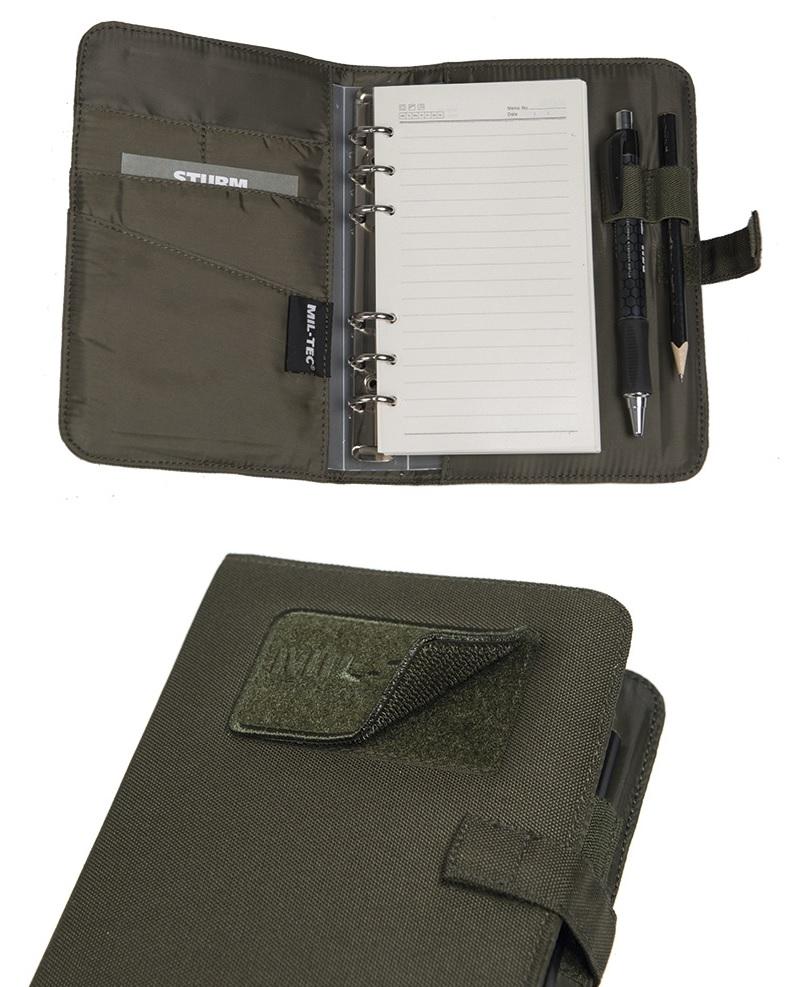 Zápisník s taktickým obalom s množstvom priehradok, ktoré môžete využiť na peniaze, kreditné karty alebo čokoľvek v danom rozmere.