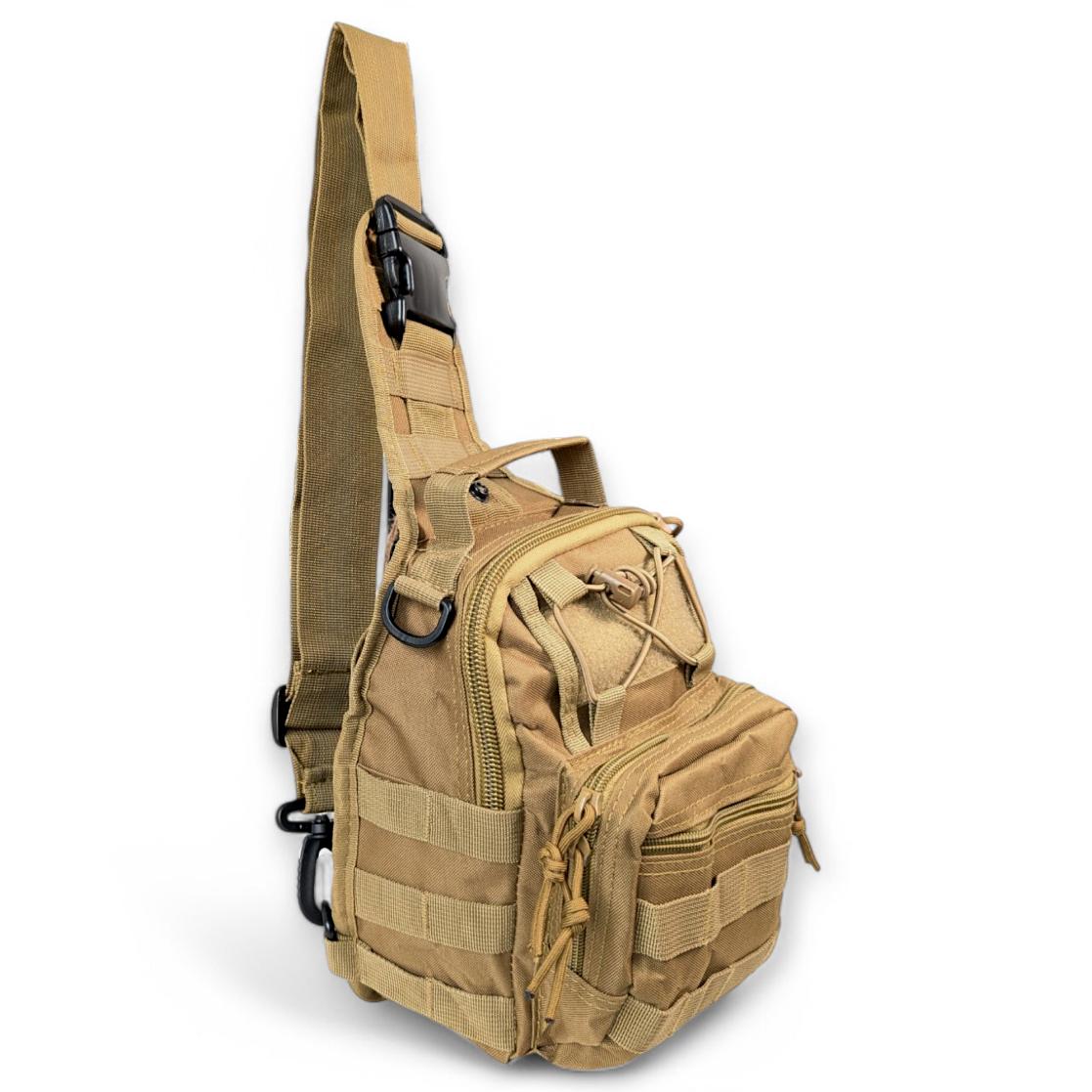 O geantă de umăr simplă de la producătorul Areswer. Geanta este echipată cu accesorii tactice, cum ar fi inelele D pentru agățare sau sistemul Molle/Pals pe partea frontală și laterală a buzunarului. Pe partea frontală se află un panou velcro, care servește pentru atașarea patch-urilor velcro.