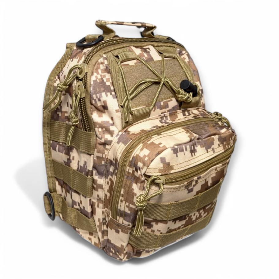 Geantă pe un umăr simplă de la producătorul Areswer. Geanta este echipată cu accesorii tactice, cum ar fi inele D pentru agățare sau sistemul Molle/Pals pe partea frontală și laterală a buzunarului. Pe partea frontală se află un panou velcro, care servește pentru atașarea patch-urilor velcro.