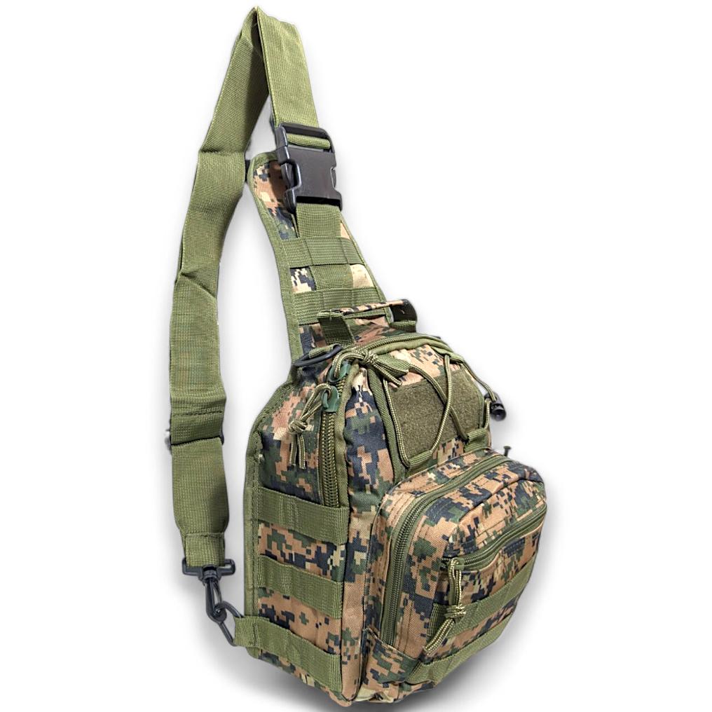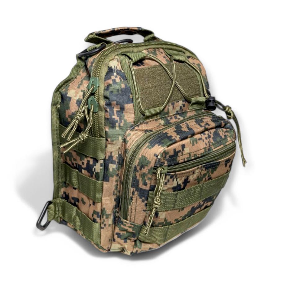 Geantă simplă de umăr de la producătorul Areswer. Geanta este echipată cu accesorii tactice, cum ar fi inele D pentru agățare sau sistemul Molle/Pals pe partea frontală și laterală a buzunarului. Pe partea frontală se află un panou velcro, care servește pentru atașarea patch-urilor velcro.